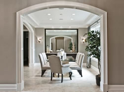 Простейшим вариантом отделать арку в доме или квартире своими руками будет выделение арочного проема контрастным оттенком. Чаще всего подбираются тона, являющиеся контрастными в отношении стен или пола. Благодаря этому, арка выглядит завершенной при возможном минимуме усилий и потраченных денежных средств. Кстати, такой способ отделки хорош для самых разных материалов Декор арки может подбираться разными способами, например, под те оттенки материалов, которыми оформлено помещение. Например, когда облицовка межкомнатной арки выполнена панелями МДФ, то желательно их совмещать с расположенными рядом дверными полотнами. Оформить конструкцию возможно посредством разного тиснения и узорных лент, соответствующих общему стилю дизайна интерьера.